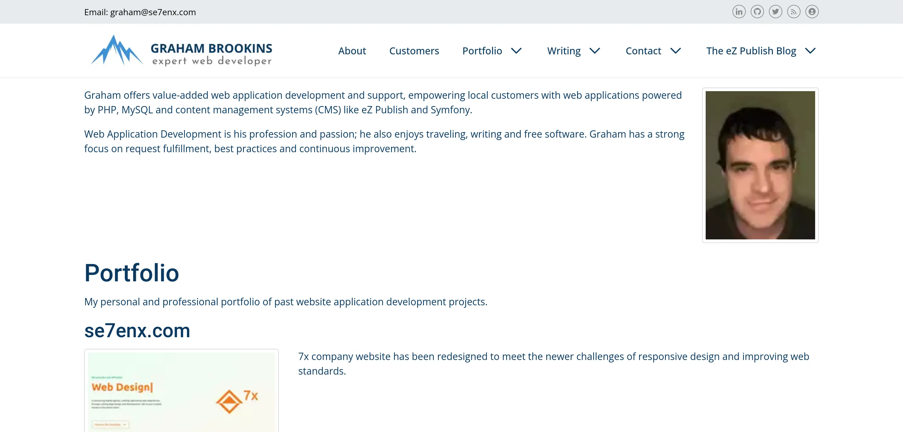 Graham Brookins Portfolio Has been redesigned to meet the newer challenges of responsive design and improving web standards.